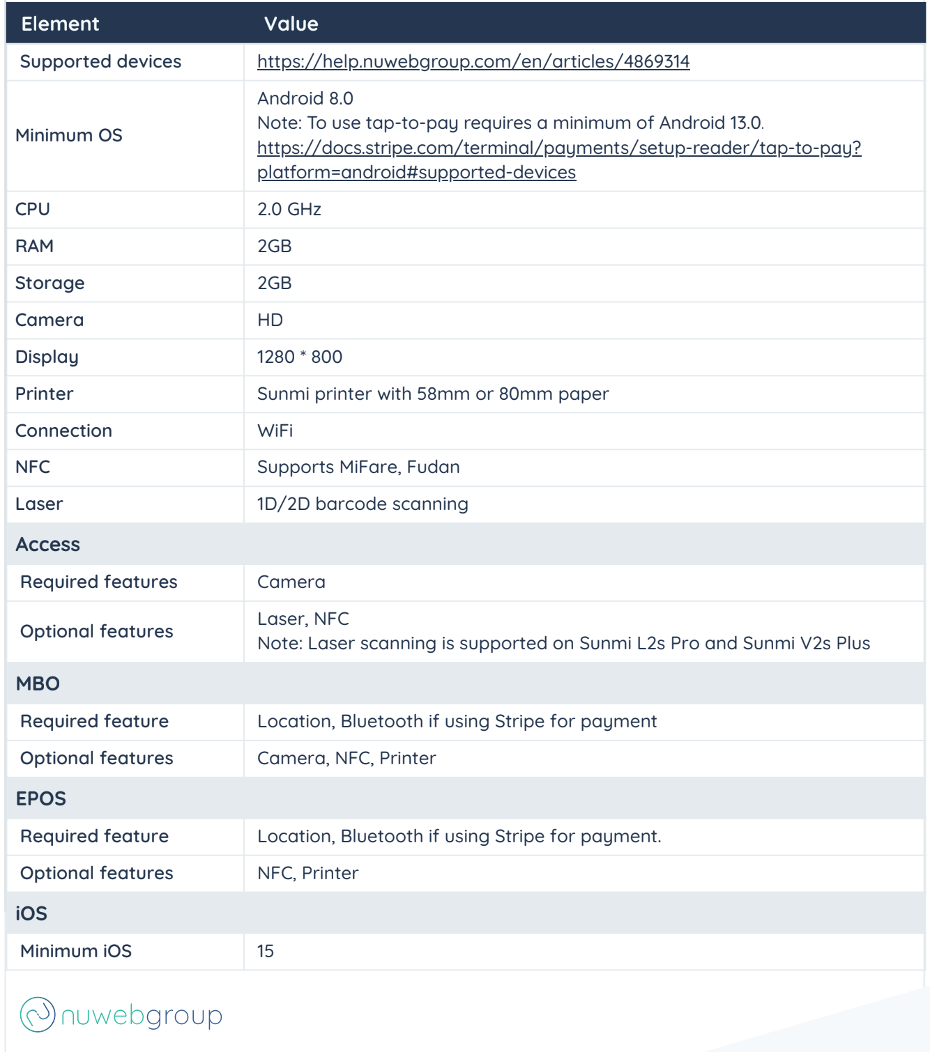 Note: If you wish to use tap-to-pay via Stripe terminals in conjunction with EPoS Pro, your device must run Android 11 or later, and must be Google Managed Service (GMS) Certified. For more information about this, please speak with our Partner Success Team.