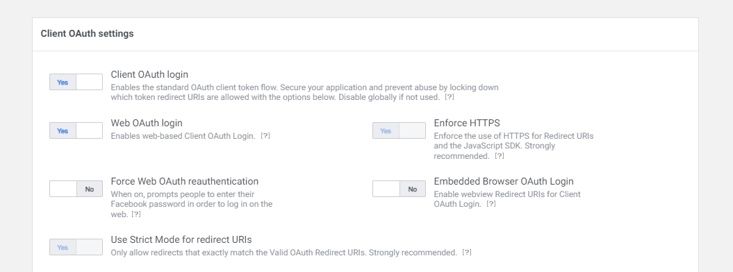 Next, in the left-hand menu, click “Settings” and under “Valid OAuth Redirect URIs” and add: