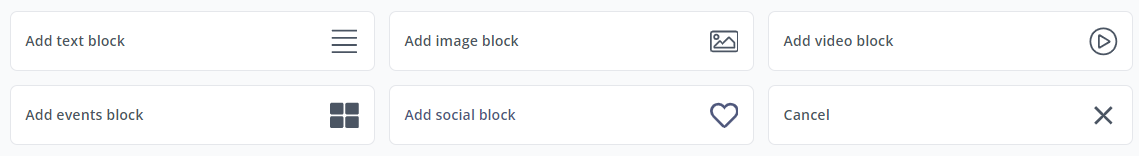 Events Block - This allows you to select a series of related events that you have created to be displayed on your event listing page.