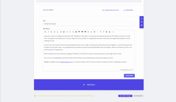 Text Block - Add additional text to your event listing page