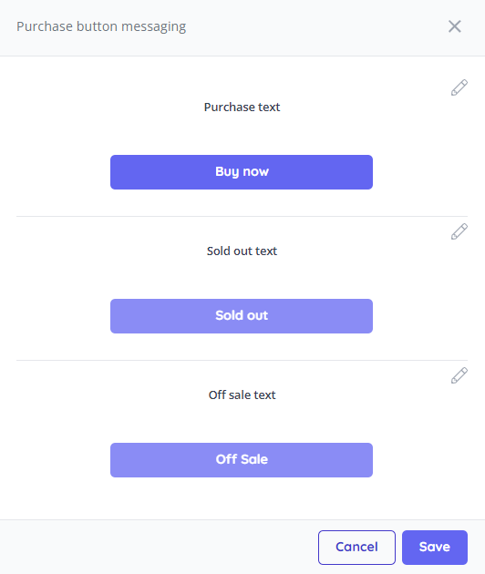 Purchase button messaging - This setting allows you to fully customise the purchase button's call to action: