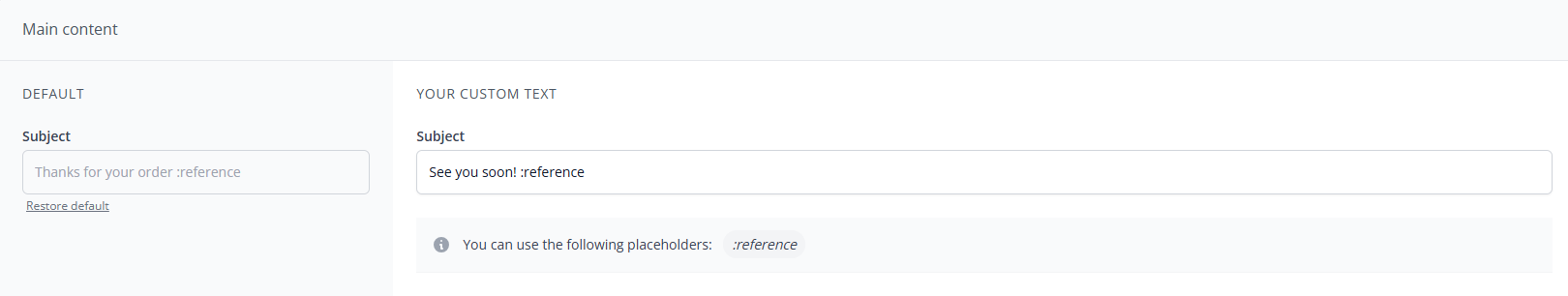 3. Once the template is selected, the new text can be added to the text inputs. To restore the original text, "Restore default" on the left-hand side can be clicked: