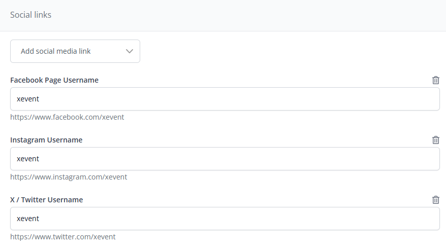3. From here, click "Add Social Media Link" and select the platform you want to link. The options are as follows: